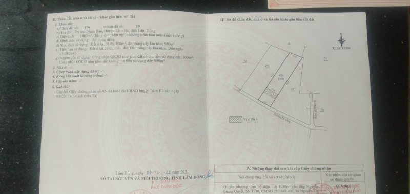 - Ngang 16m, tổng diện tích 1080m2, có sẵn 100m2 thổ cư, đất quy hoạch full thổ.