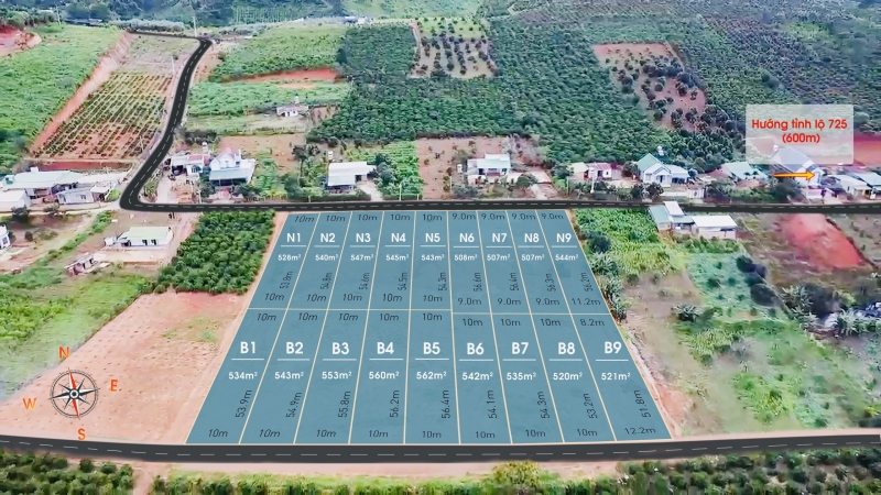 - Hạ tầng hiện hữu, đường nhựa rộng đến 10m. Mở rộng trục đường chính DT725 lên Đà Lạt